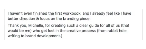 “I finally have a clear direction for my business, brand messages that guide my copy, and a complete brand aesthetic. The amount of value in this course is insane!”
