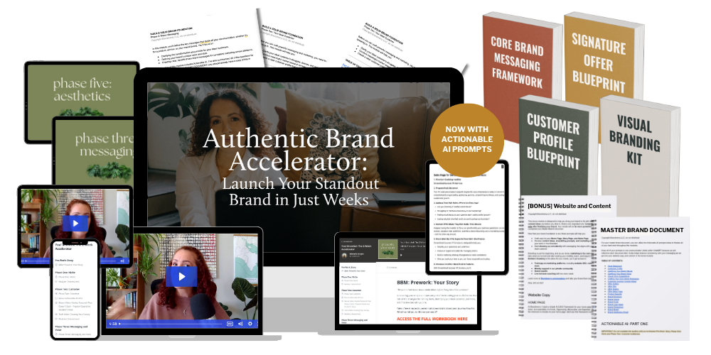 This is the complete step-by-step system to build an authentic, money-making brand in weeks, the brand foundation, the messaging, the visuals, the customer journey, so you can finally start attracting ready-to-buy clients instead of freebie seekers.